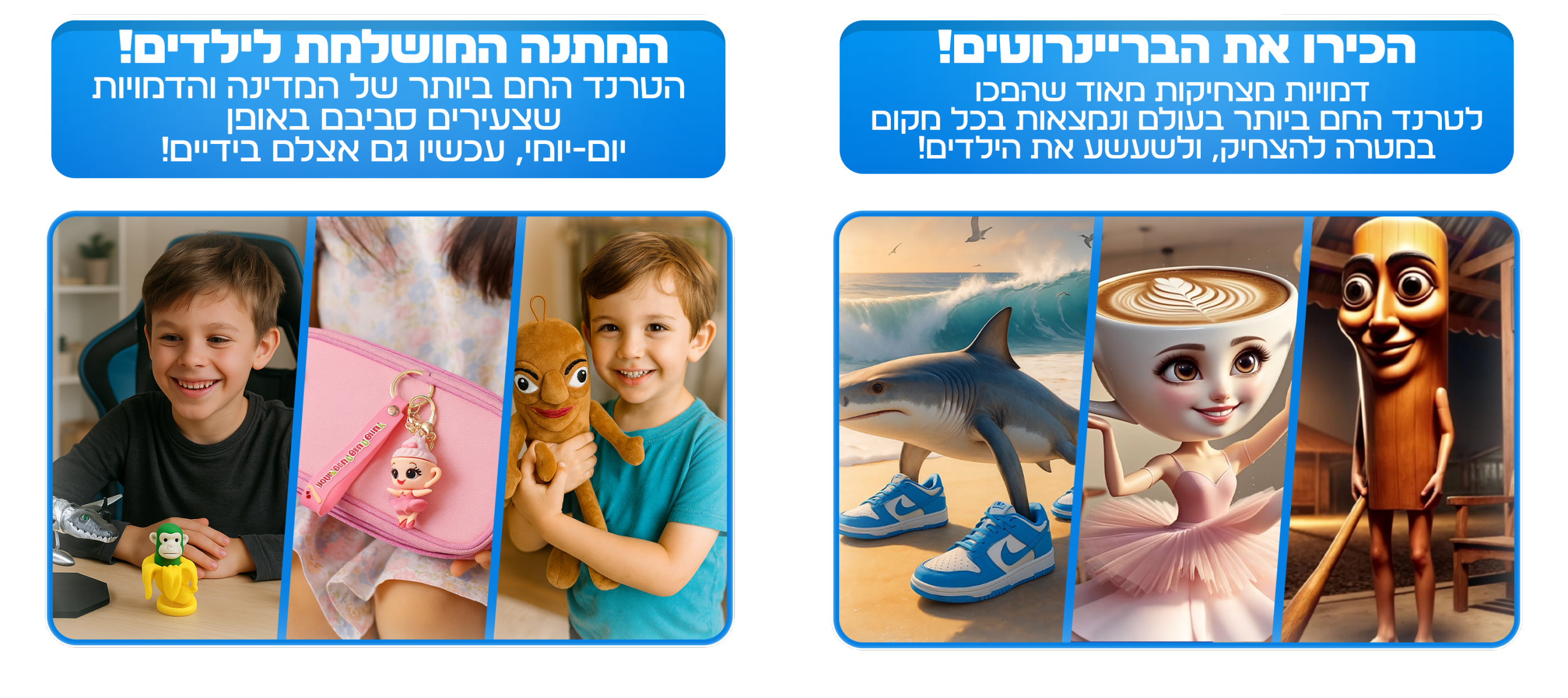 תדמיינו את הילד שלכם פותח את האריזה ורואה את אחת מהדמויות האלה חיוך ענק, התרגשות, וחיבוק חזק
